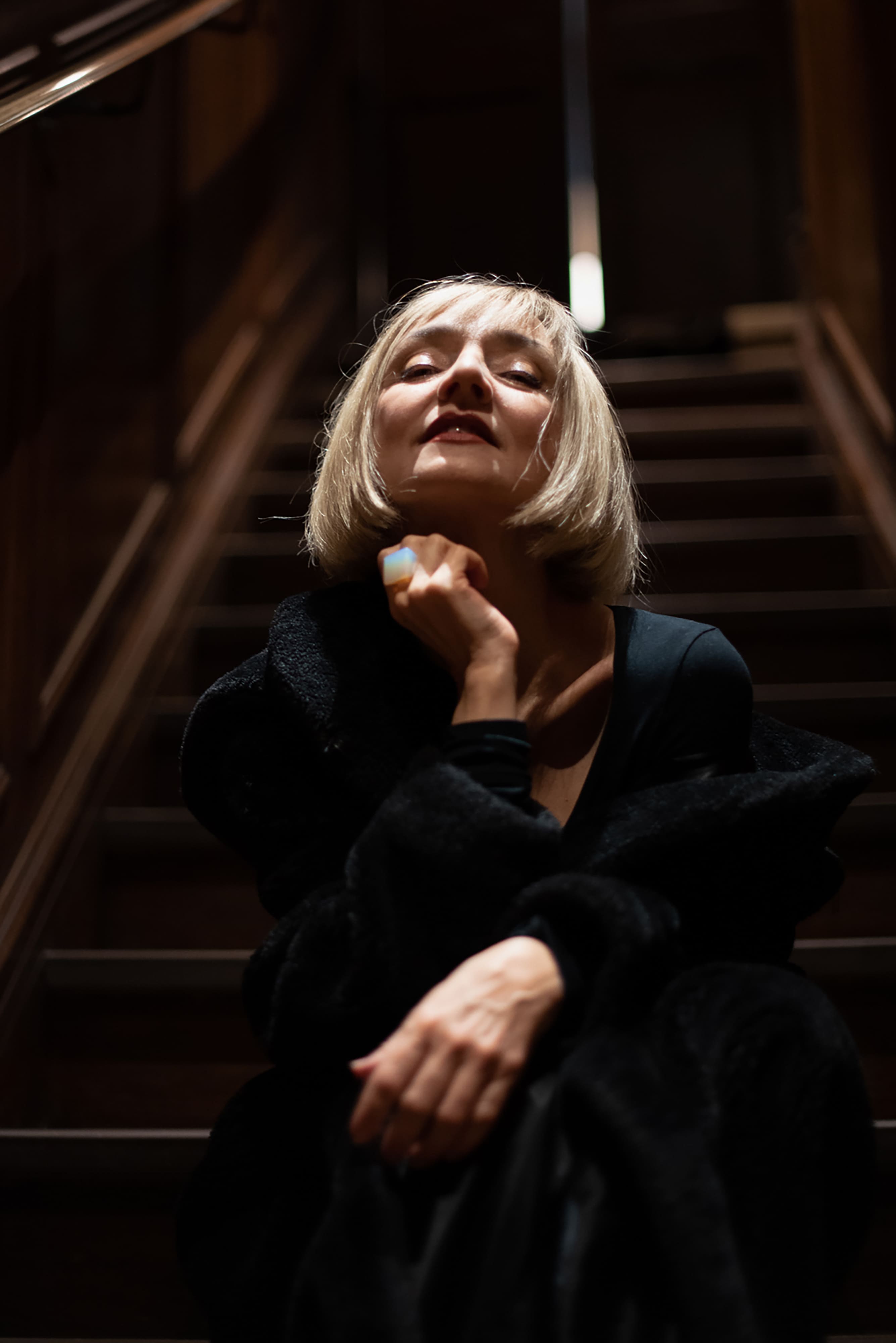 Alors j’ai fini par me laisser porter par mon instinct, la lumière, le lieu et le modèle, bref j’ai fini par me faire confiance. Parmi toutes les personnes rencontrées, je pense que c’est Maria de Medeiros que j’ai pris le plus de plaisir à photographier. Inspirée par ce couloir d’un hôtel, elle a posé avec simplicité et naturel, ce qui m’a permis de laisser davantage place à la créativité, d’imaginer un univers poétique qui me plaisait.